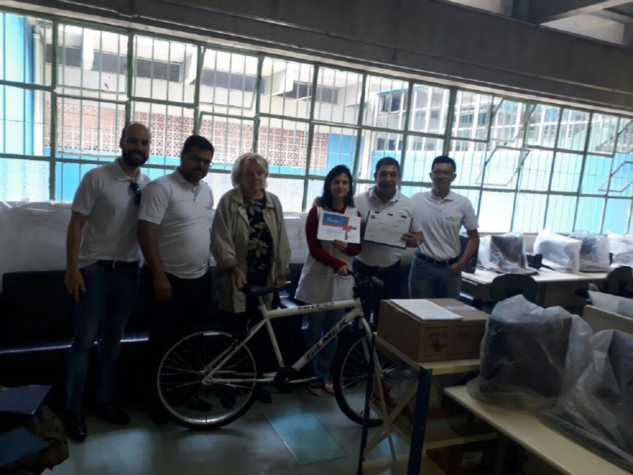 Premiação do primeiro colocado também com uma bicicleta.