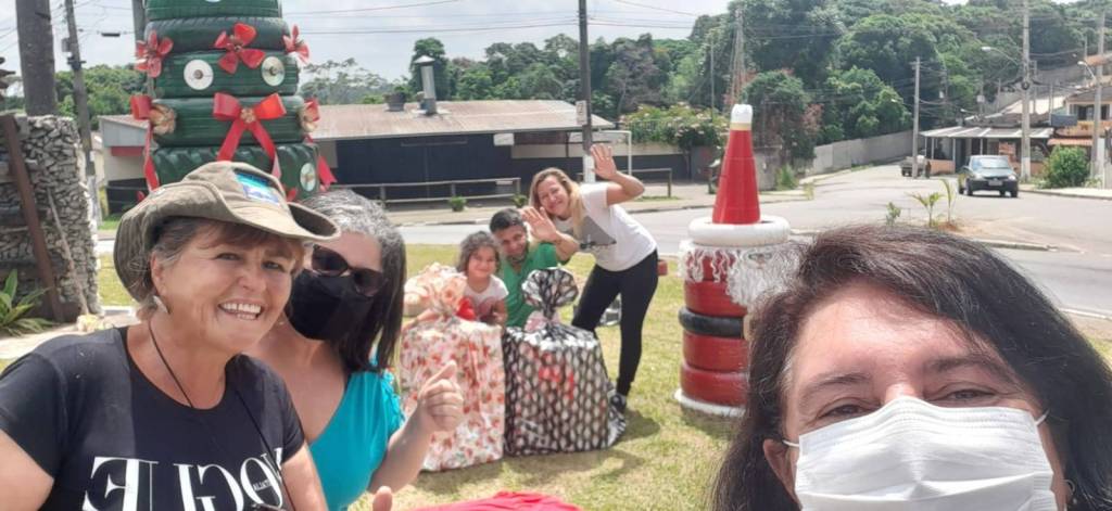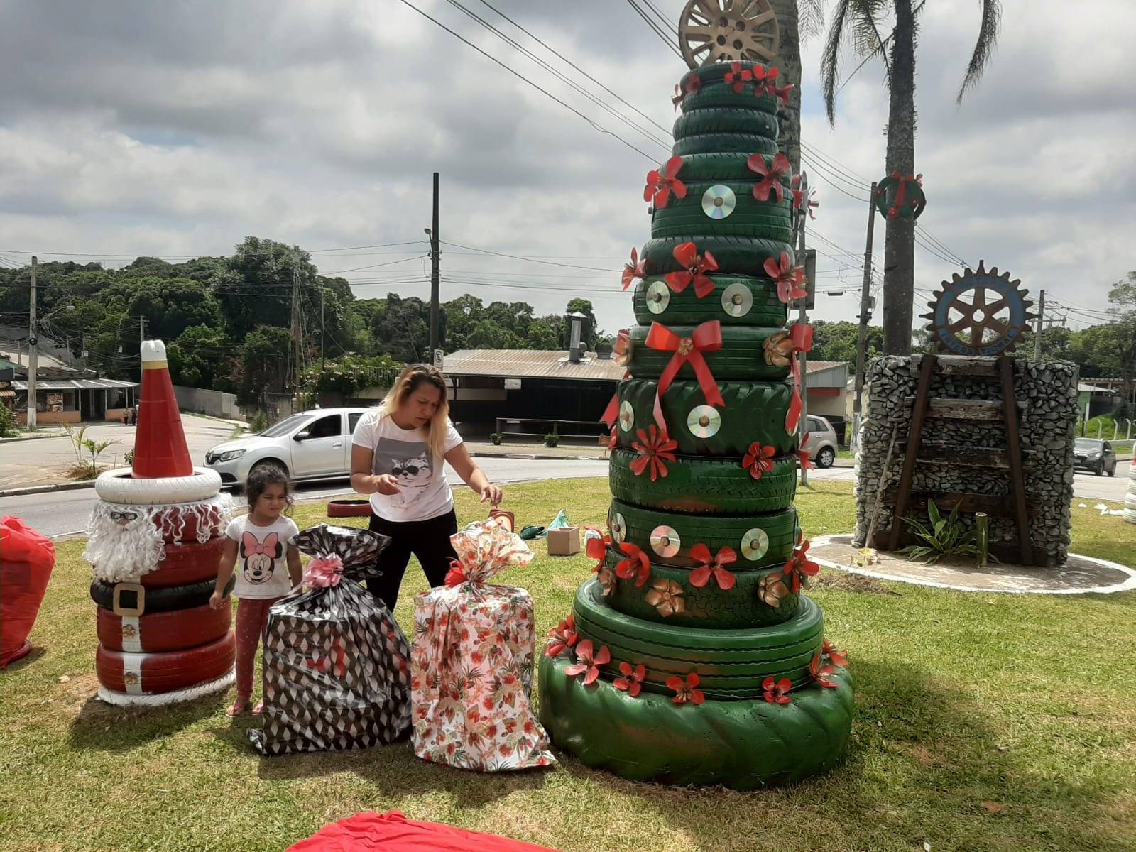 Neste caso pneus, calotas etc., graças a sua criatividade, enfeitaram a praça do Marco Rotário de nosso município, com motivos natalinos.
