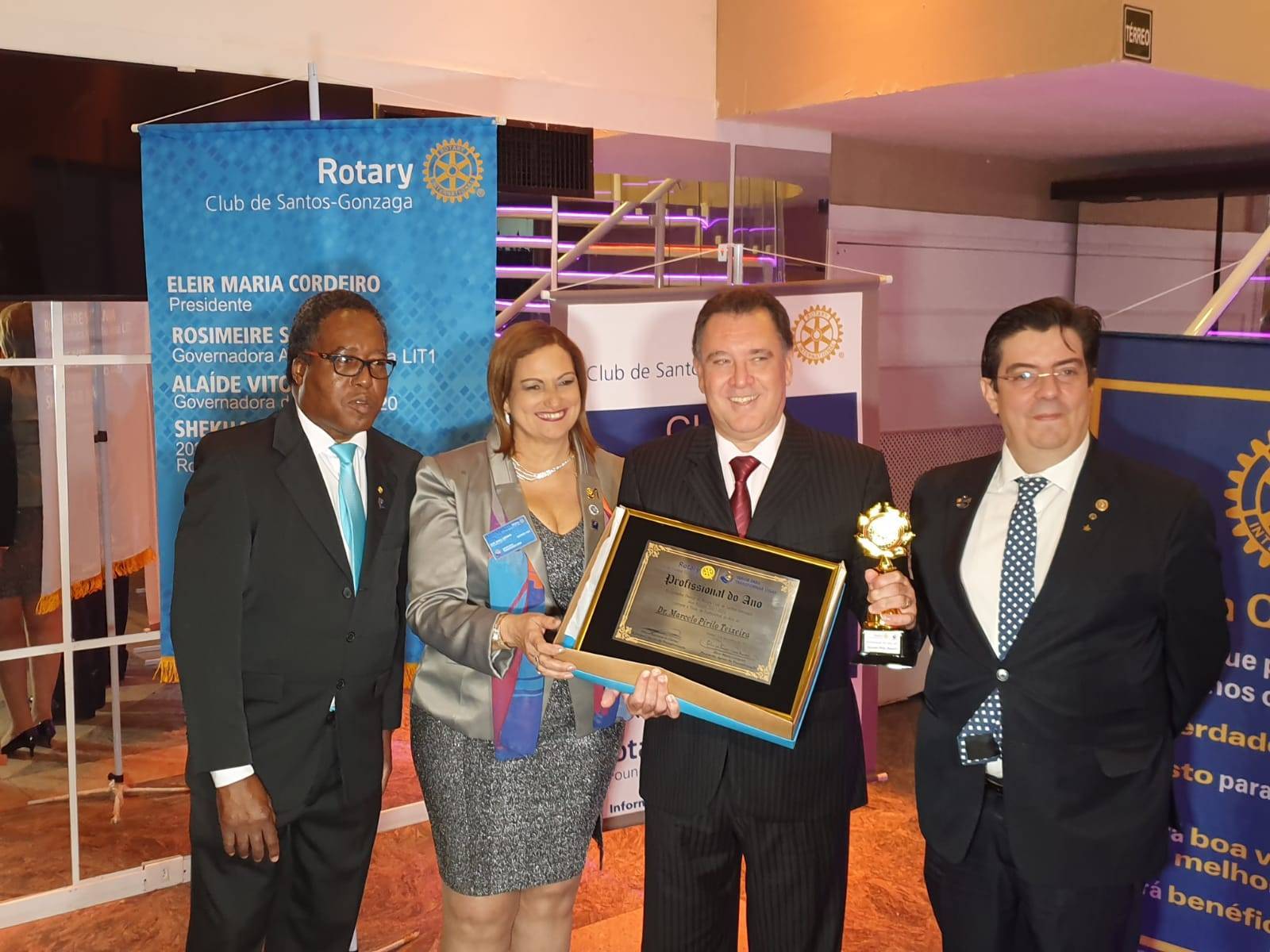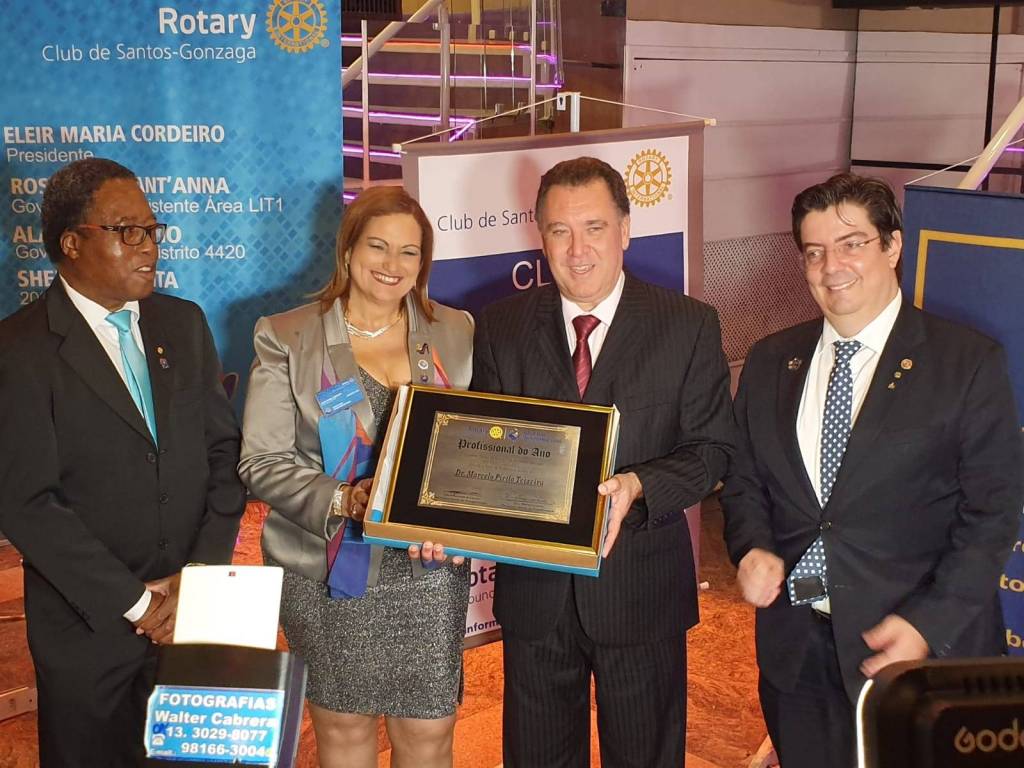 Reunião festiva de 12 anos de fundação do Rotary Club de Santos-Gonzaga e entrega do Prêmio Profissional do Ano. Marcelo Teixeira, associado do nosso Rotary Club de Santos-Porto foi um dos homenageados do evento.