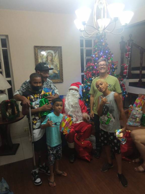 Missão Anglicana de Santos/SP, liderada pelo reverendo Sérgio Ferreira, entrega de brinquedos e panetones doados pelo Rotary Club Satélite de Santos-Porto Cidade Solidária e seus voluntários às crianças dos bairros do Estuário e do Macuco.