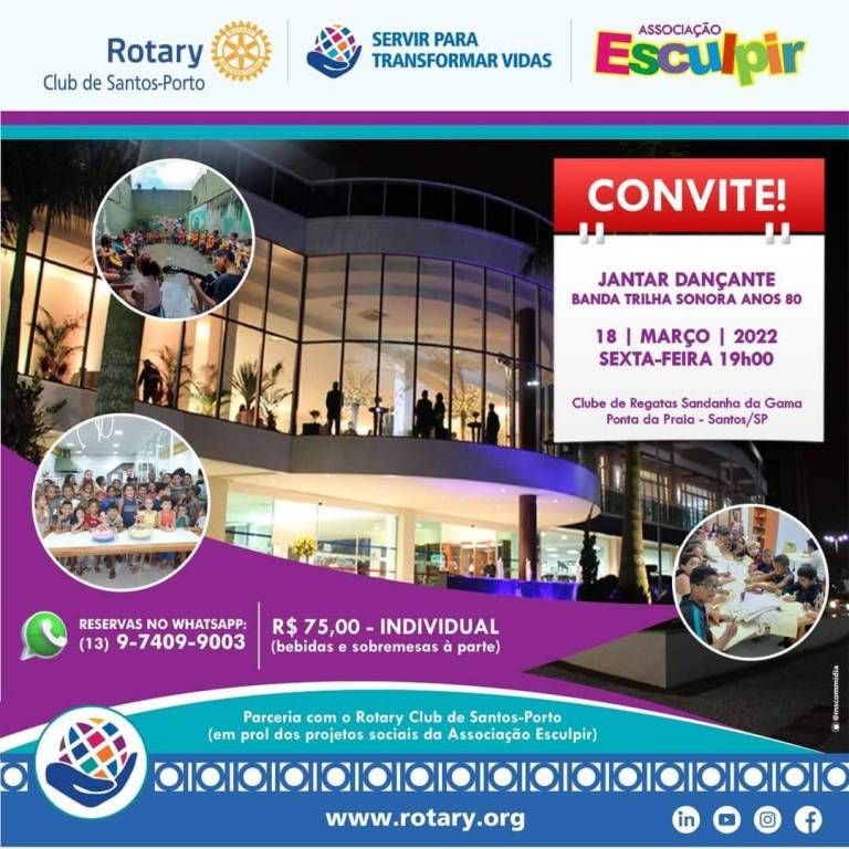 #RotaryClubDeSantosPorto #ServirParaTransformarVidas #JuntosSomosMaisFortes #RotaryInternational #RotaryDistrito4420 #AssocialçãoEsculpir