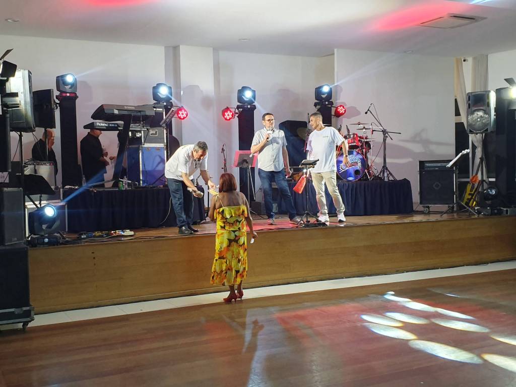 O brilhante evento foi animado pela Banda Trilha Sonora Anos 80, no salão de festas do Clube de Regatas Saldanha da Gama, em Santos/SP.