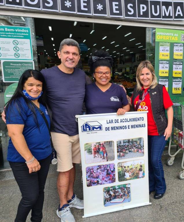 A presidente Meire acompanhada dos companheiros Roberto, Andre, João, Alessandra e Rosinha realizou hoje no GPA de São Vicente o Desafio do Bem com a intenção de arrecadar alimentos e itens basicos para o LAM-Lar de Acolhimento de Meninos e Meninas que colaborou com a presença de 04 funcionárias em dois períodos que muito nos ajudaram no trabalho desenvolvido. A presidente ;meire agradece a todos os que puderam comparecer e ajudar no trabalho bem como a todos que realizaram suas doações.