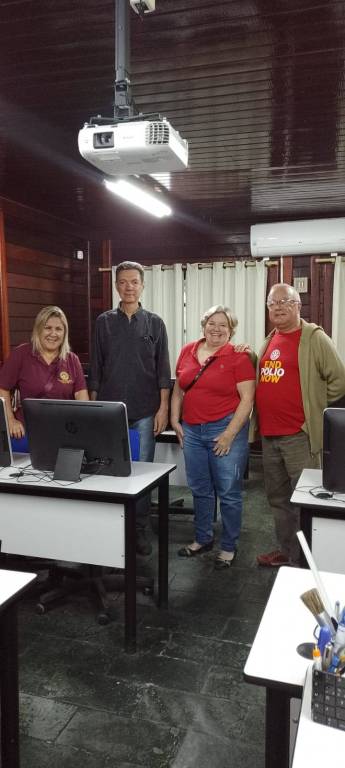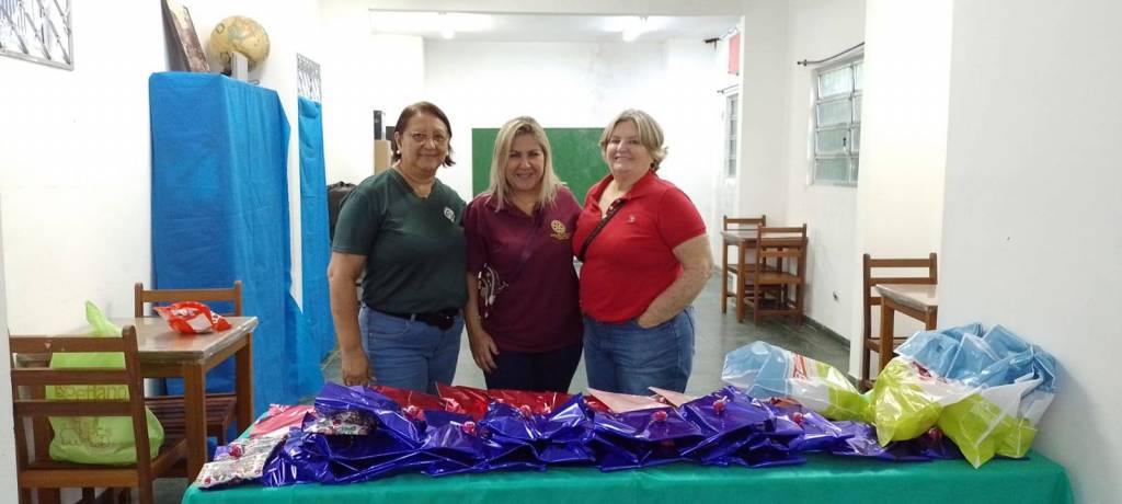 A presidente Meire acompanhada dos companheiros Carmem, Luiz e Roberto estiveram realizando a entrega de brinquedos e pirulitos para as crianças da Instituição Irma Dolores, nossa parceira, onde temos instalada nossa sala de aulas de informática na área Continental de nossa cidade.