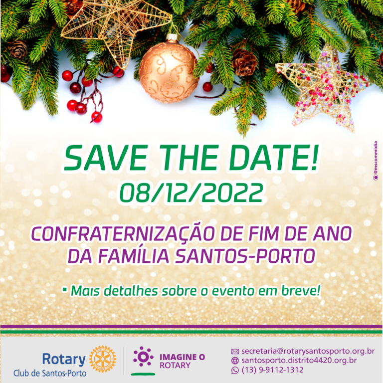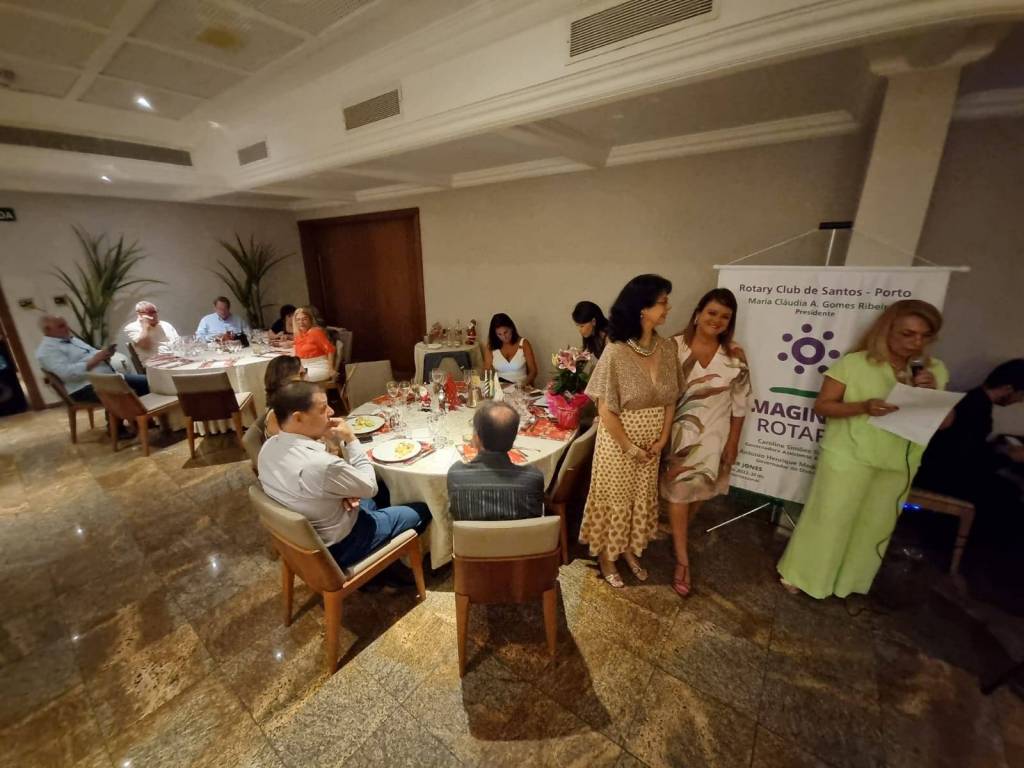 Na memorável noite de 8 de dezembro de 2022, no Bourbon Santos Convention Hotel, em Santos/SP, o Rotary Club de Santos-Porto realizou sua Confraternização de Fim de Ano. Liderado pela presidente Maria Claudia Ribeiro, o clube celebrou o êxito dos projetos humanitários realizados neste o ano, recebendo amigos, associados e familiares num aconchegante jantar natalino. Durante o evento, ela também deu posse para uma nova associada do clube, a companheira Cecília Helena Andrade de Almeida Gonçalves, Arquiteta e Urbanista. Além de boas-vindas para a nova rotariana, Maria Claudia agradeceu o público presente por mais um ano de confiança, projetos e realizações. Por fim, ela desejou Boas Festas e Feliz 2023 para todos!