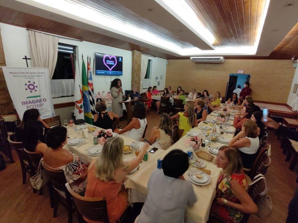 Nesta quinta-feira (23), o Rotary Club de Santos-Porto realizou importante debate em celebração ao Mês da Mulher. O conteúdo ficou por conta das facilitadoras Isabela Castro, conselheira estadual e presidente da Comissão Estadual Mulher Advogada da OAB-SP; e de Fabiana Mota, presidente da Associação Mulheres Solidárias. O importante encontro também teve a participação especial de Renata Bravo, vice-prefeita de Santos/SP, que falou da importância da participação feminina em todos os segmentos da sociedade. A presidente da ASFAR Santos (Associação de Famílias de Rotarianos de Santos), Malu Mauá, foi uma das homenageadas durante o festivo jantar.