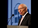 O presidente eleito do RI Sakuji Tanaka revelou o lema do RI para 2012-13, Paz Através do Servir, durante a abertura da sessão plenária da Assembleia Internacional de 2012.