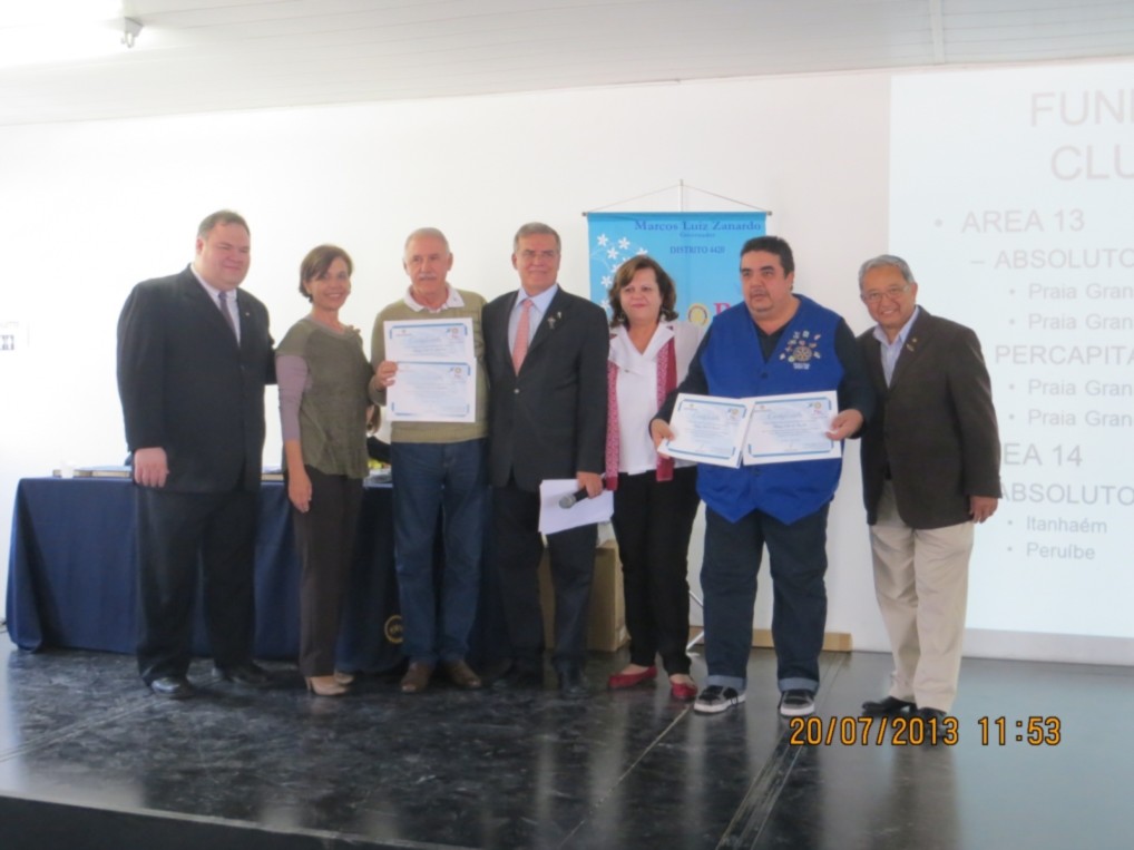 No dia 20 de Julho foi realizada pelo casal Governador 2012-2013 Marcos Luiz Zanardo e Maria Laiz a entrega das premiações para os clubes do Distrito e equipes distritais, em reconhecimento ao trabalho realizado durante o ano da paz, 2012-2013. Foram premiados os clubes que mais cresceram no ano, por diversos critérios, entre absolutos e percapita, clubes que masi contribuíram com a Fundação Rotária, além dos Governadores Assistentes que se destacaram com os objetivos alcançados pelos clubes de sua área. Também foram entregues reconhecimentos a membros da Equipe Distrital e a Menção Presidencial a Rotaract Clubs e aos Rotary Clubs do Distrito. A premiação foi organizada pelo Leonardo Weissmann.