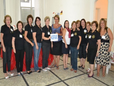 Nas fotos, registro das asfarianas de Santos, que receberam a visita de Celia Maria, esposa do governador, que foi recebida pela tesoureira da associação e organizadora do evento Maria Lúcia e a movimentada lanchonete do evento.